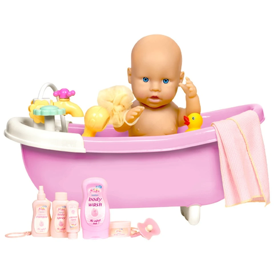 Hoe goed kan jij je baby verzorgen? Maak de pop helemaal schoon in deze prachtige roze badkuip!