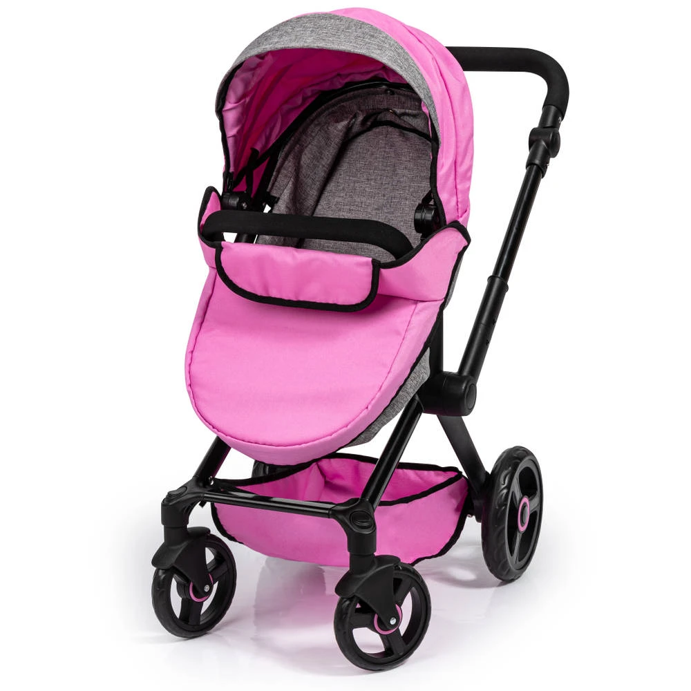 Neem je pop gezellig mee in deze roze XEO poppenwagen. Deze combipoppenwagen heeft een extra tas en een verstelbaar handvat.