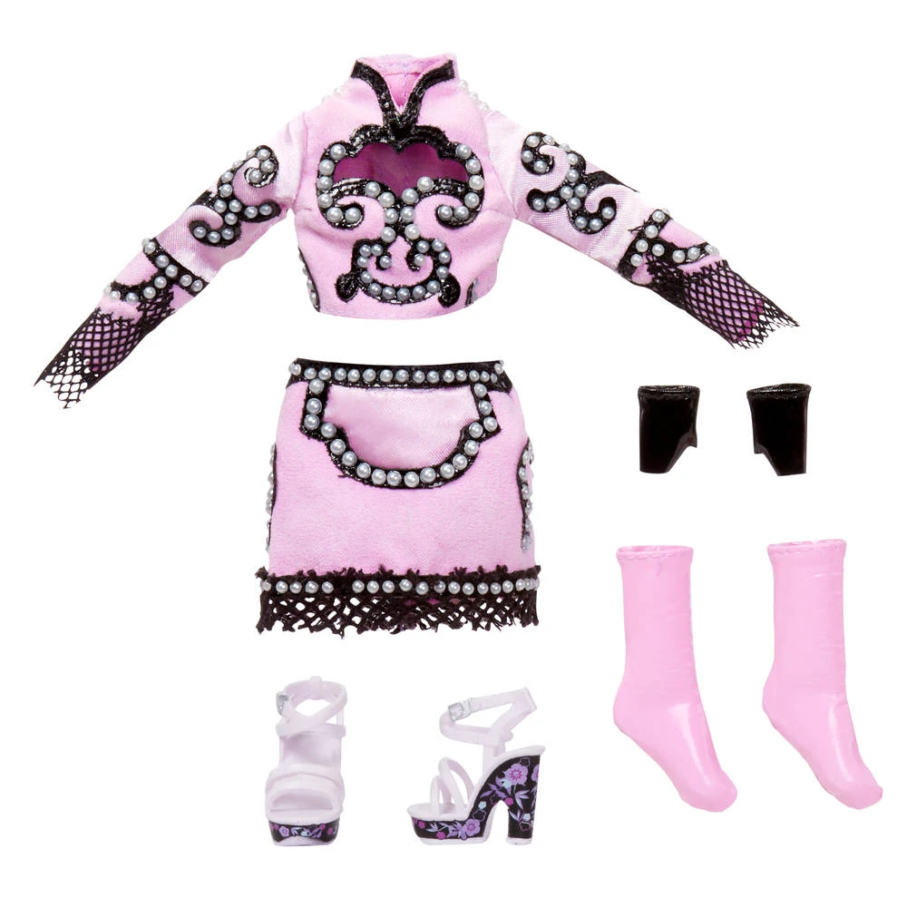- De set bestaat uit een modepop, twee complete poppenoutfits, twee paar poppenschoenen, poppenaccessoires, poppenstandaard, headset met microfoon en bandmerchandise. De officiële bandmerchandise bestaat uit een T-shirt en een concertboekje met songteksten en miniposter van de band.