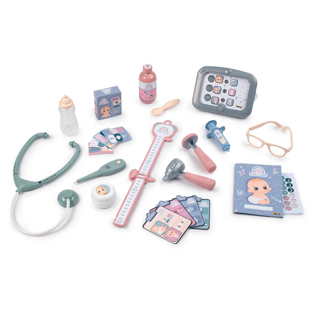 Speel een heuse dokter en verzorg jouw babypop met deze mooie Smoby baby verzorgingstafel. Inclusief verbanddoos, zelfklevend verband, fles en vele andere accessoires.